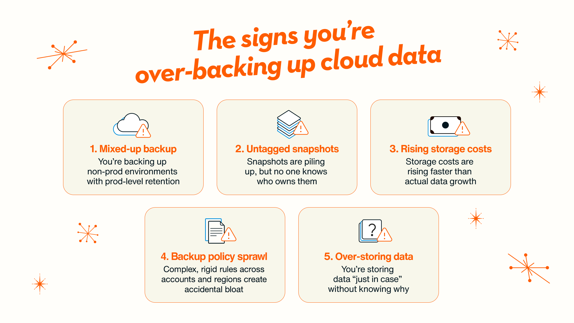 No one sets out to over-back up, but in fast-moving cloud environments, it happens faster than you think. Tagging slips, policies misfire, retention drags on too long, and visibility drops to zero. Before long, costs and complexity spiral.