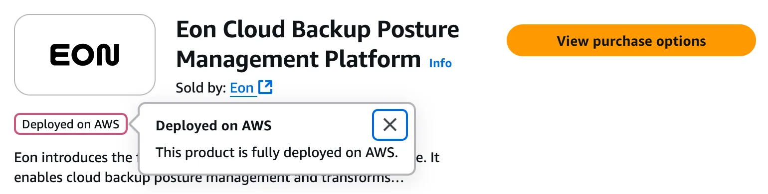 We’ve got good news: Eon has officially earned the “Deployed on AWS” badge and continues to be available in the AWS Marketplace.