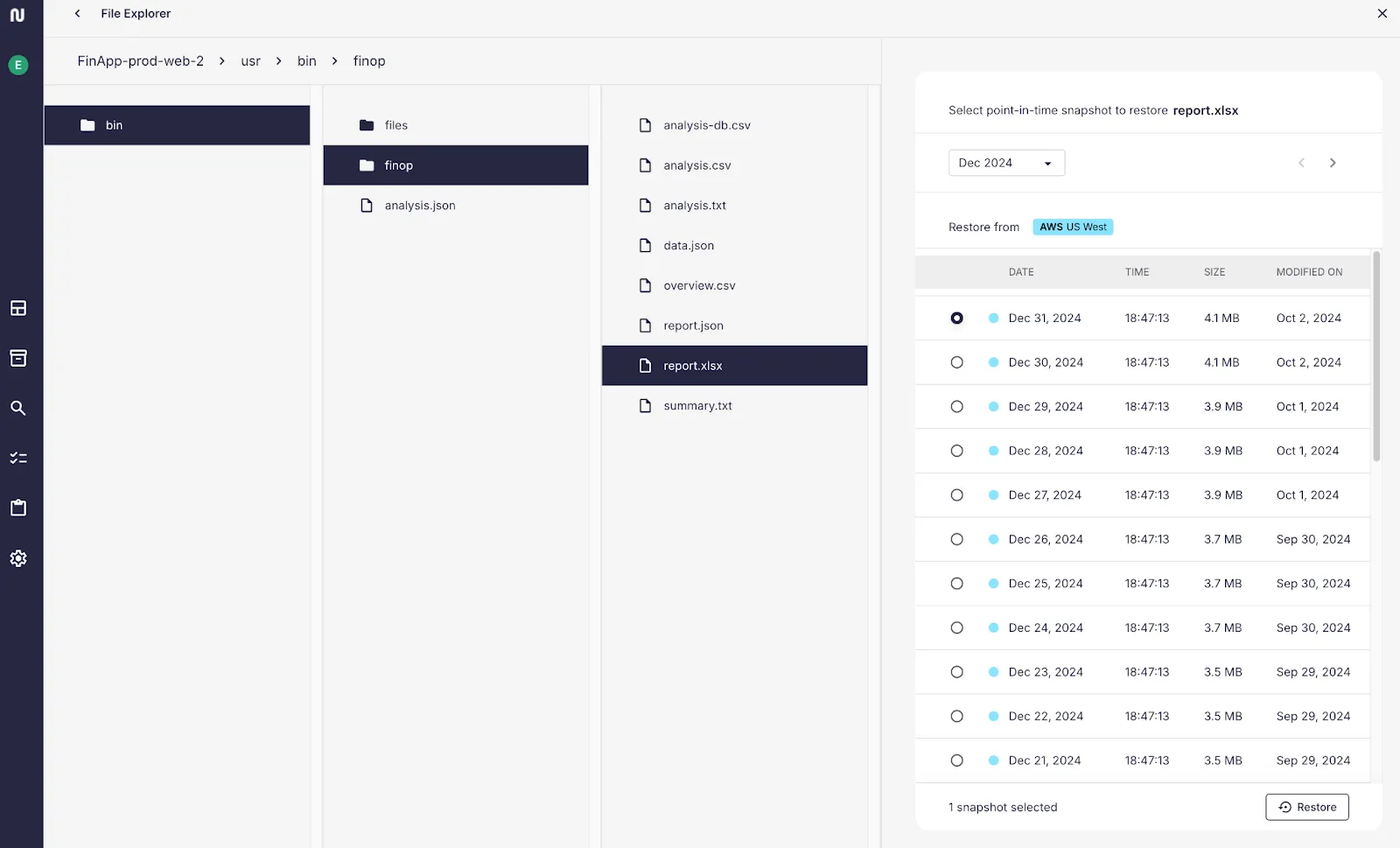 Beyond offering the benefits of a more efficient backup solution, built for the cloud from the ground up, Eon provides additional capabilities that enhance enterprises’ ability to improve security and compliance. For instance, our global search and granular restore capabilities eliminate the need to restore entire environments to recover data, allowing enterprises to quickly recover specific files or database records, saving time and reducing cloud compute and storage costs in the process. These capabilities can save cloud teams an unprecedented amount of manual work, allowing them to rise above the typical operational efficiencies that plague traditional recovery processes and mitigate the high associated costs of these otherwise tedious operations.