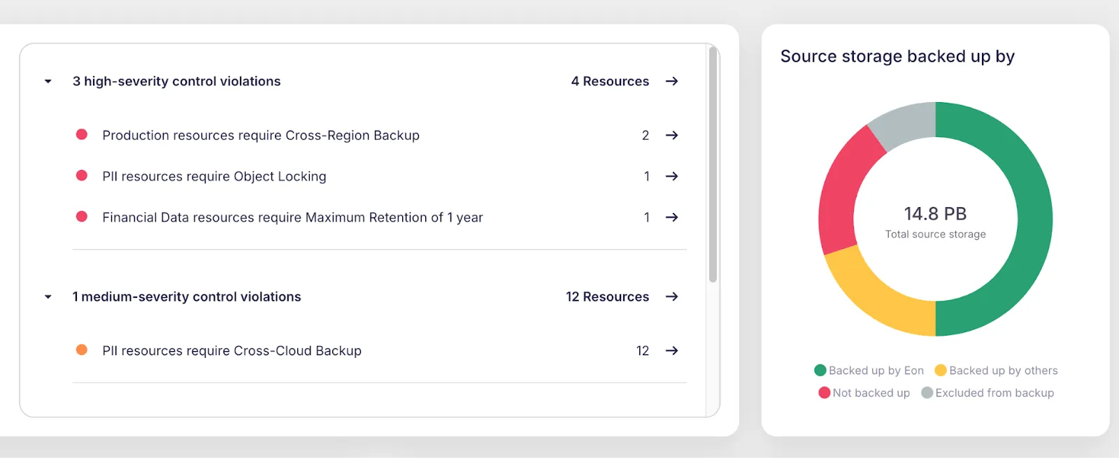 With this added visibility, Eon’s automated cloud resource discovery helps customers prevent over-backing up of cloud resources. Eon provides a comprehensive view of the current backup posture as it applies to sometimes thousands of cloud resources across accounts, enabling enterprises to identify inefficiencies and risks quickly. With centralized backup policies that apply consistently across all teams and cloud environments, Eon simplifies management, reduces errors, and ensures compliance, ultimately saving costs while improving data protection.