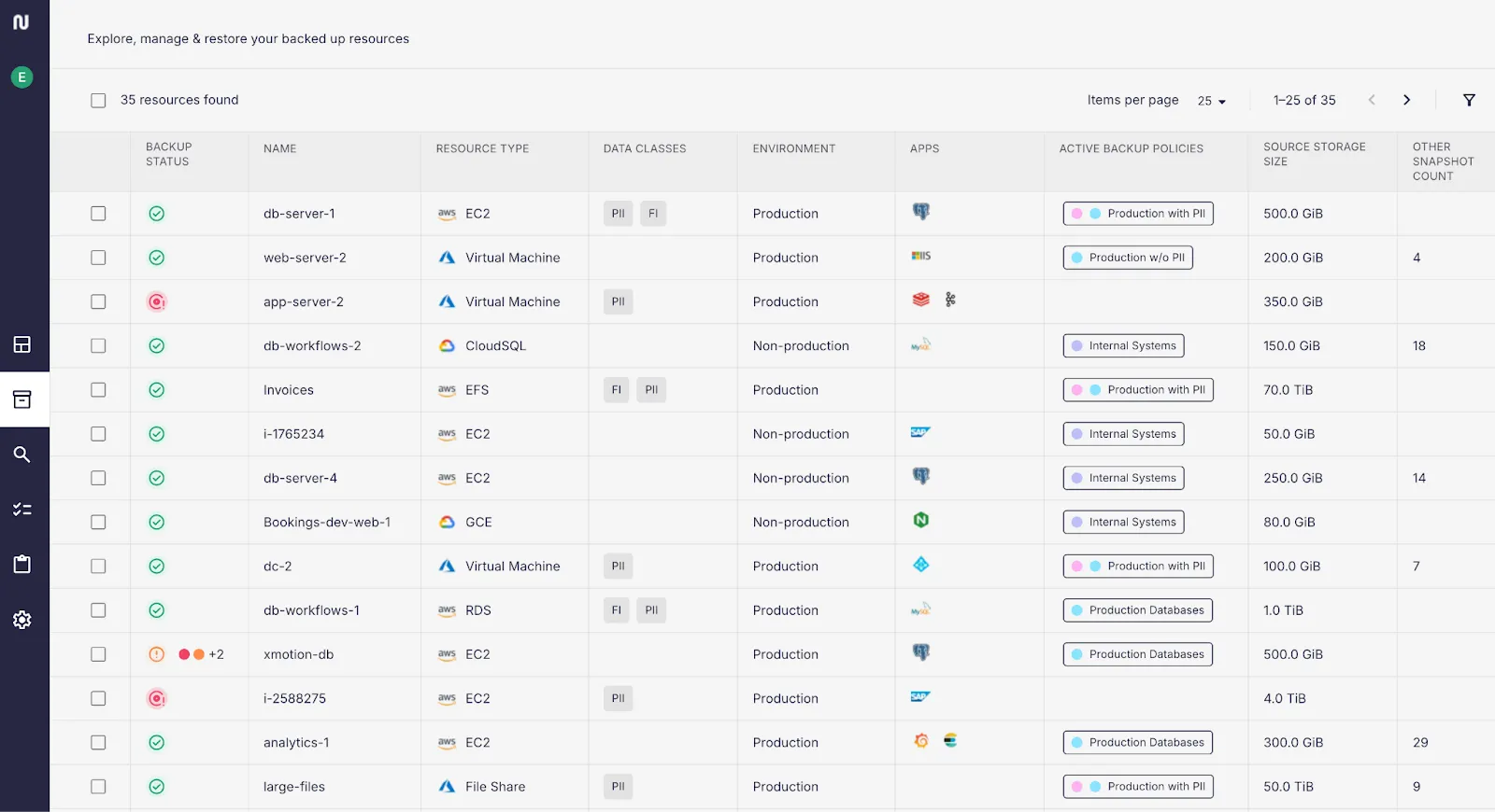 When Eon’s discovery automatically inventories an organization’s cloud resources, in addition to running automated data and environment classification, it also determines if existing snapshots exist for those resources.