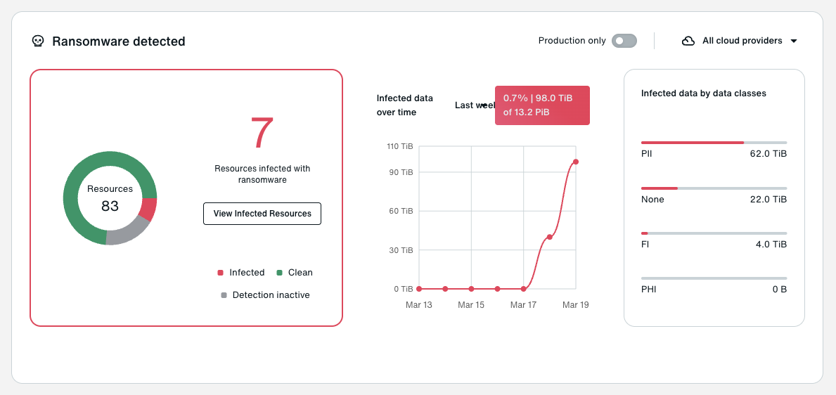 At the architecture layer, Eon uses logically air-gapped, immutable backups. At the control layer, Eon uses CBPM to continuously discover resources, classify data, and enforce policy coverage without relying on manual tagging. At the detection layer, Eon surfaces signs of compromise across the workloads teams actually run.