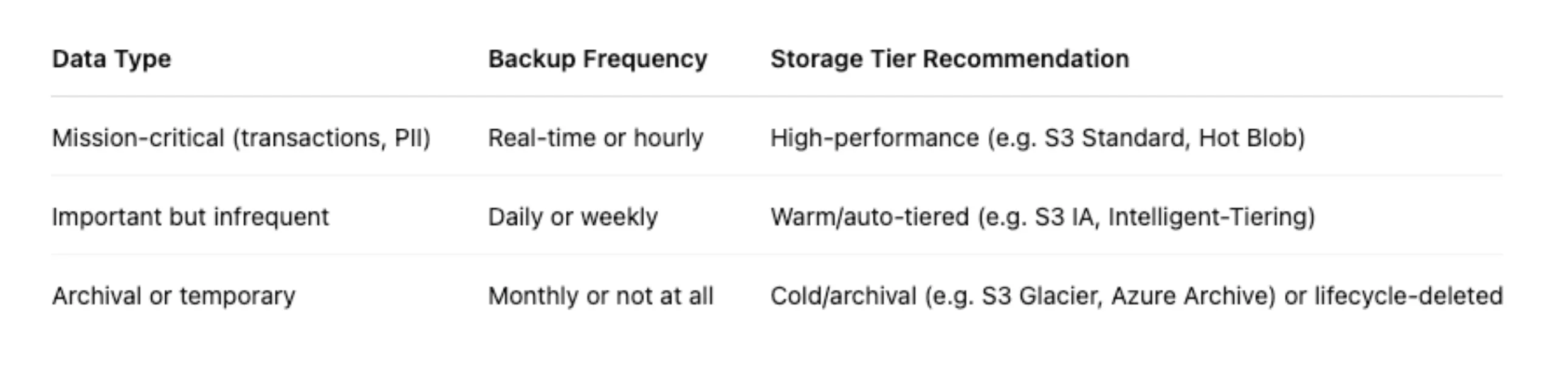 - Tune backups by workload: Not everything needs hourly snapshots.