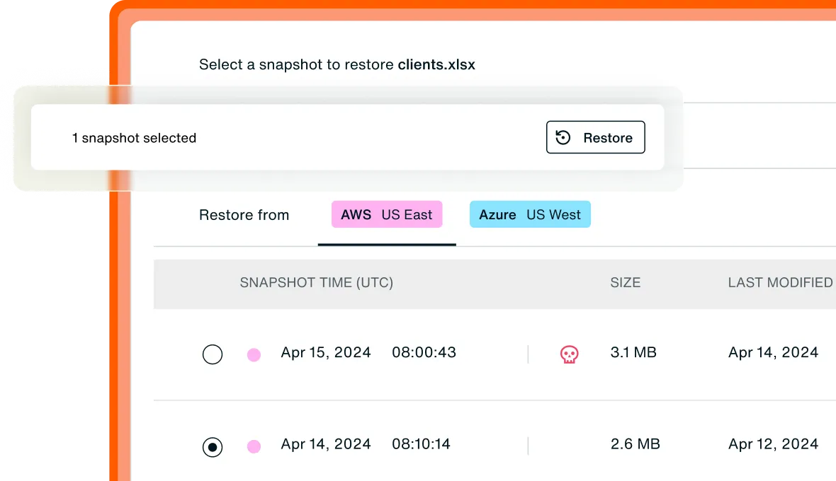 Search your backupsQuery backup data with simple search to find the right file, record, or point in time fast.