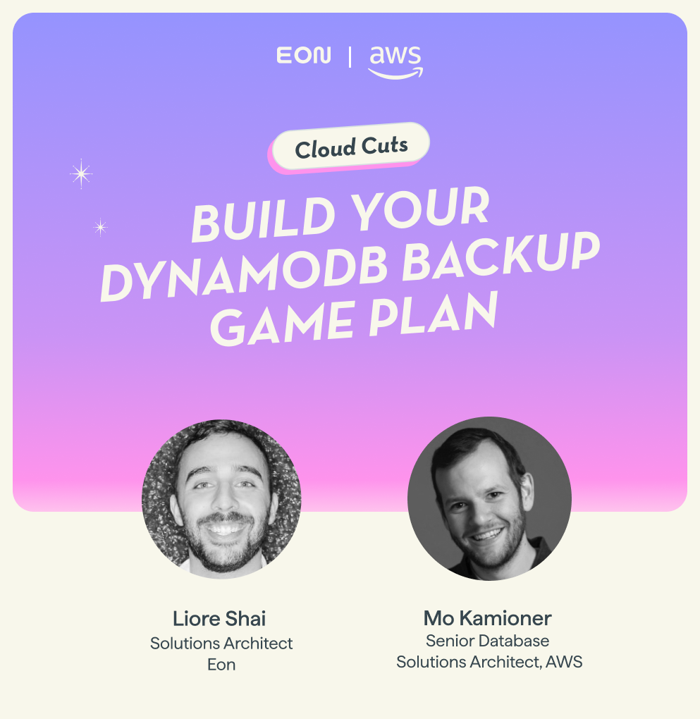 In this Cloud Cuts session, AWS and Eon walk through the DynamoDB backup patterns that work at scale. We’ll cover when each AWS-native feature fits, where teams extend the foundation with smarter workflows, and how to mix these tools confidently without overspending.